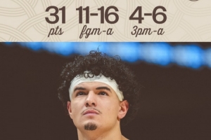 本场桑托斯打出生涯之夜,35分钟16投11中,三分6中4、罚球8中5砍下生涯新高31分外加3篮板1助攻2抢断1盖帽,也有5失误,正负值-6。