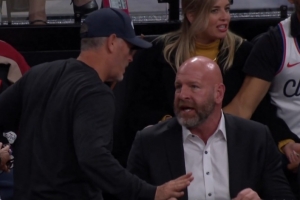 很有压迫感!对阵快船时开拓者新老板邓顿与GM克罗宁激烈争论