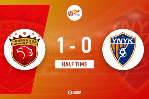 上半场补时12分钟,上半场结束,上海海港1-0云南玉昆。